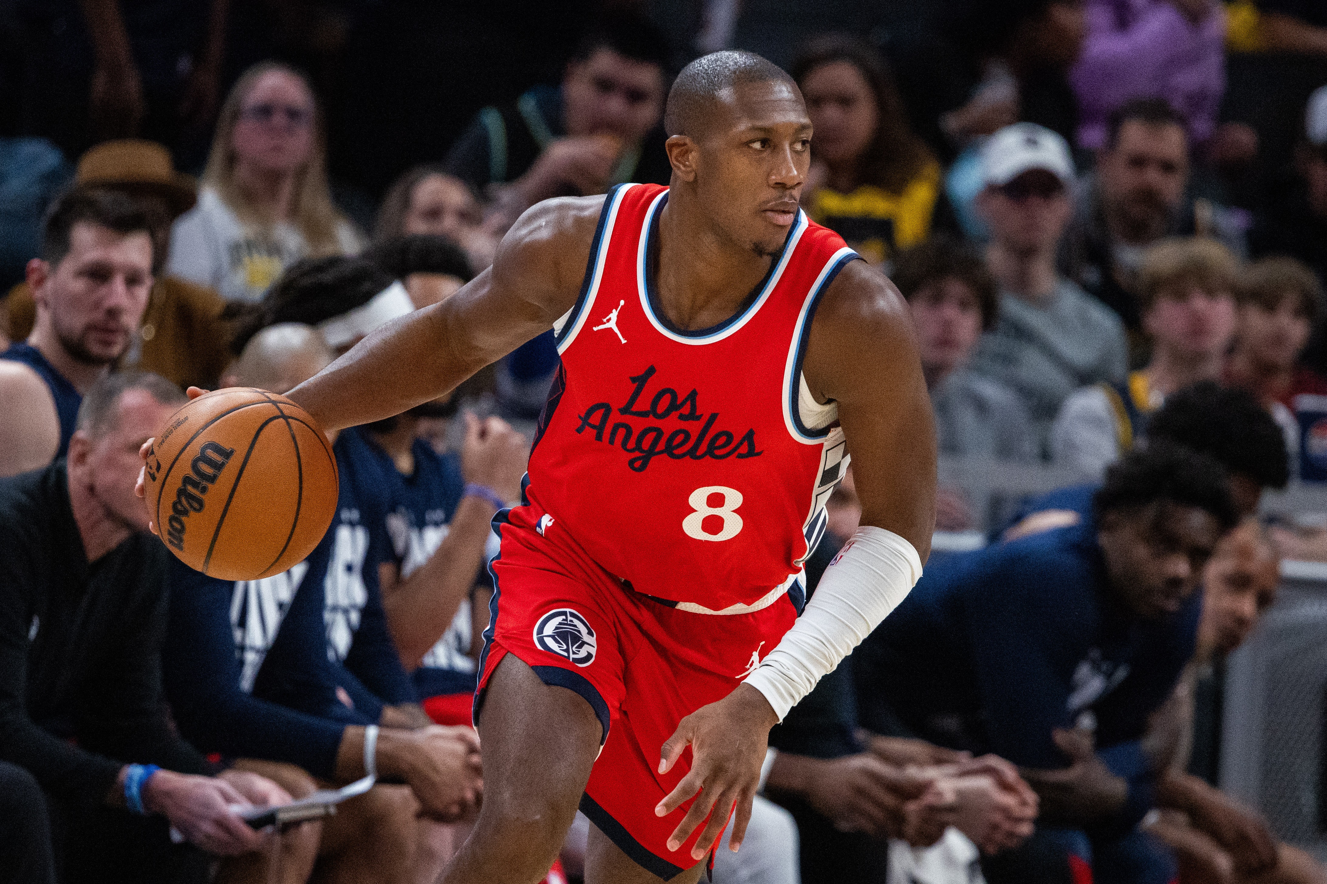 鄧恩能擠過掩護,能鎖死對位者,能攔截傳球后又回到位置上干擾對手投籃。最重要的是,鄧恩會以極致的壓迫力消耗對手。在洞悉對手的進攻意圖后,鄧恩會迫使對方啟用B計劃或者C計劃。對于那些認為外線防守者不如內(nèi)線球員重要的人,每當(dāng)我想到鄧恩作為快船隊強大防守中可以說是最關(guān)鍵的一環(huán)所產(chǎn)生的影響,我就無法理解他們的想法。比賽的終極目標(biāo)是阻止對手得分,而鄧恩在這點上不輸任何人。