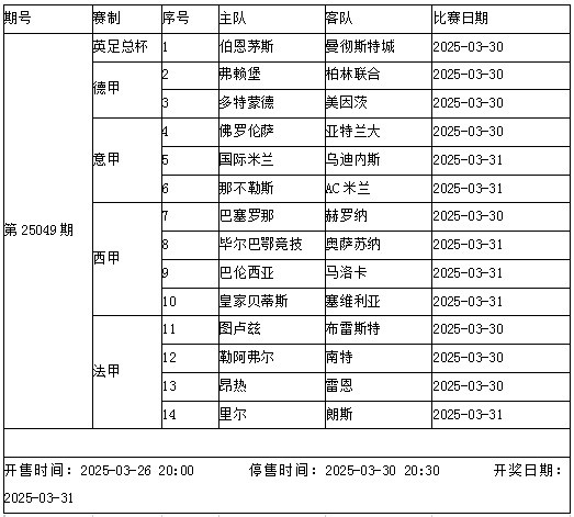 傳足勝負(fù)彩第25049期競(jìng)猜賽事為英足總杯、德甲、意甲、西甲和法甲賽事,其中曼城將在英足總杯1/4決賽中對(duì)陣伯恩茅斯,意甲領(lǐng)頭羊國米主場(chǎng)面對(duì)烏迪內(nèi)斯,AC米蘭和那不勒斯展開強(qiáng)強(qiáng)對(duì)話,西甲巴薩坐鎮(zhèn)主場(chǎng)迎戰(zhàn)赫羅納。